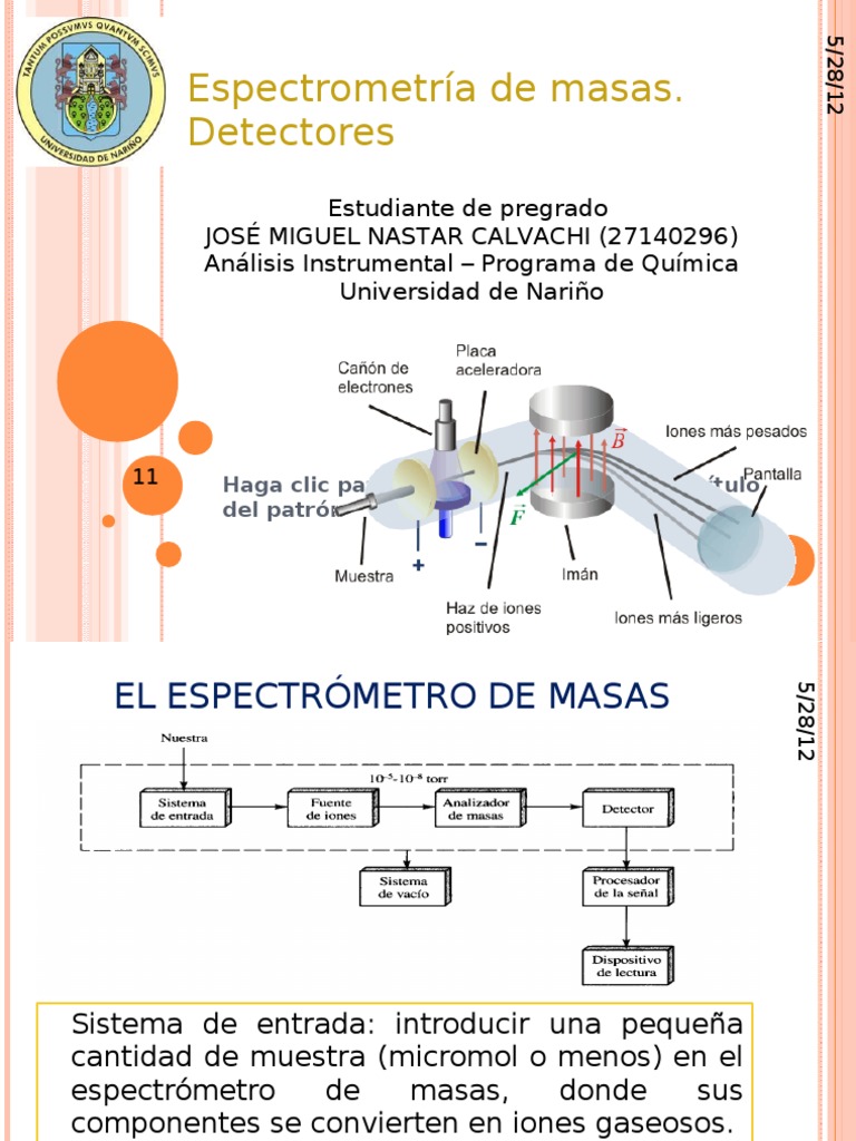 Espectroscopía espectrometria de masas la espectrometría de masas es una técnica experimental que permite la medición de iones derivados de moléculas. Utilizando la espectrometría de masas (em) podemos conocer la masa de una molécula. La espectrometría de masas es una técnica analítica esencial en el contexto de la proteómica debido a su alta capacidad de análisis, su sensibilidad y su precisión en la determinación de las masas. Espectro de masas del patrón de fragmentación de la. This is espectrometría de masas conceptos básicos by augusto torres on vimeo, the home for high quality videos and the people who love them.